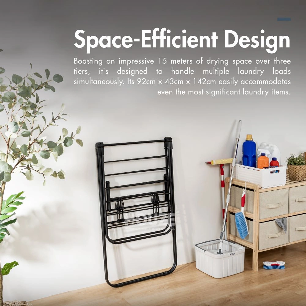 Discover the Future of Laundry with HOUZE’s Innovative Airer Rack: Say hello to the HOUZE Menshar Gullwing QuickFold Rust-Free Airer Rack. a marvel in sleek black. This collection represents the zenith of laundry solutions. offering unmatched versatility for your drying needs.