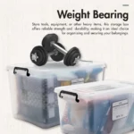 Step away from conventional storage options and embrace a world where style and functionality merge. With a transparent body. peeking inside is a breeze; no need to lift the lid! Accentuated by a chic black handle and wheels. this underbed box offers flair without compromising utility. Its snap-lock side handles secure your valuables. while the reinforced bottom promises unparalleled stacking stability.