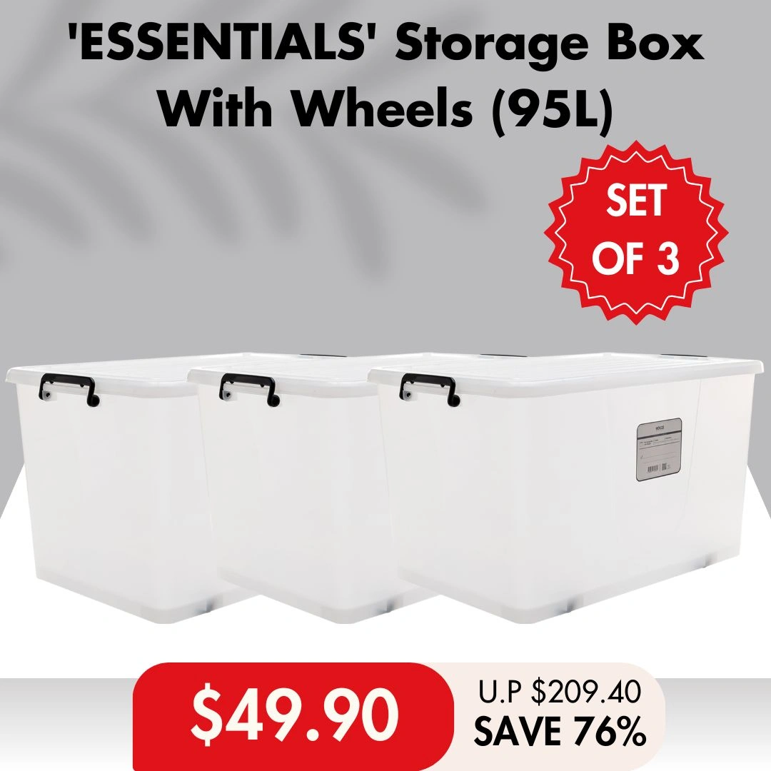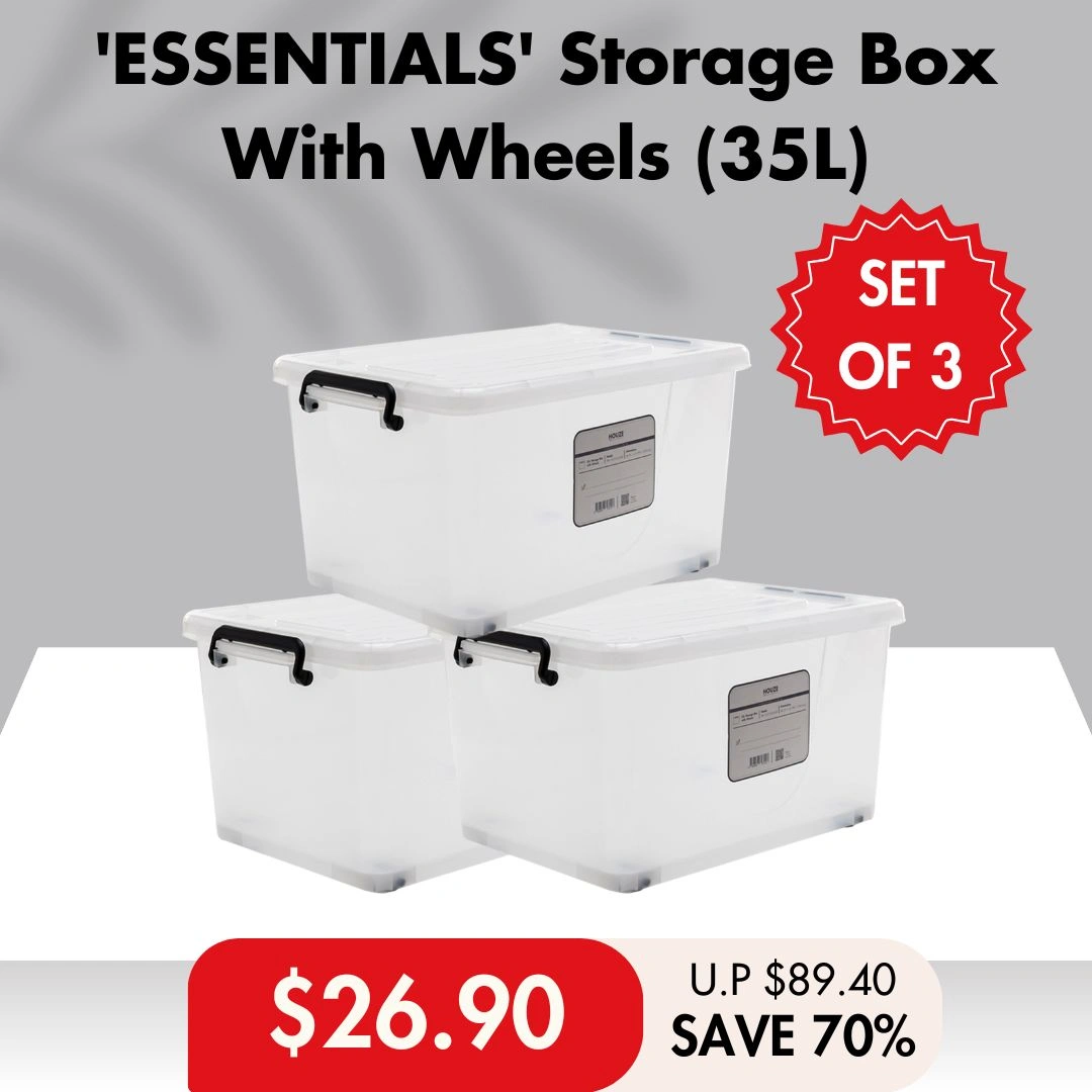 HOUZE - 'ESSENTIALS' Storage Box With Wheels 5 Sizes 15L|35L|55L|75L|95L (Clear) - Plastic | Container | Box | Organizer