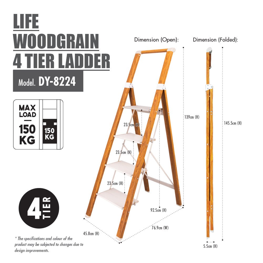 The HOUZE – LIFE Woodgrain 4/5 Tier Ladder isn’t just about reaching those high shelves and elevating every moment. Whether changing a lightbulb. retrieving your favourite book. or draping fairy lights for a festive mood. this ladder is your partner. Its spacious steps ensure comfort. while the solid anti-slip bases guarantee safety. Crafted from enduring aluminium. investing in this ladder promises longevity.