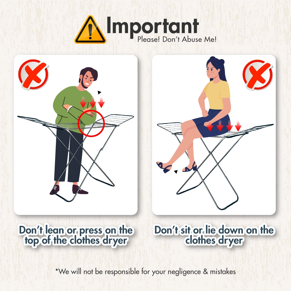 ♦ A hassle-free three-fold drying solution for clothes – has more bearing capacity for storage or drying of larger load of clothes