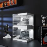 The SoleMate IllumiCube is not just any shoe display; it’s a testament to the ultimate combination of functionality and elegance. Each box is crafted with the unparalleled strength of Acrylonitrile Butadiene Styrene (ABS) and Polycarbonate (PC). ensuring durability and a sleek finish. Including LED lights takes this piece a notch higher. allowing your prized footwear to shine in all its glory.