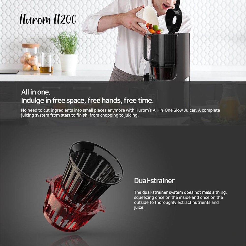 The latest in a lineage of innovation. Hurom’s H400 Easy Clean Slow Juicer maximizes juice yield while also minimizing pulp. Easy to clean and visually stunning. the H400 is a powerful addition to any kitchen. The latest in the apex of juicing.