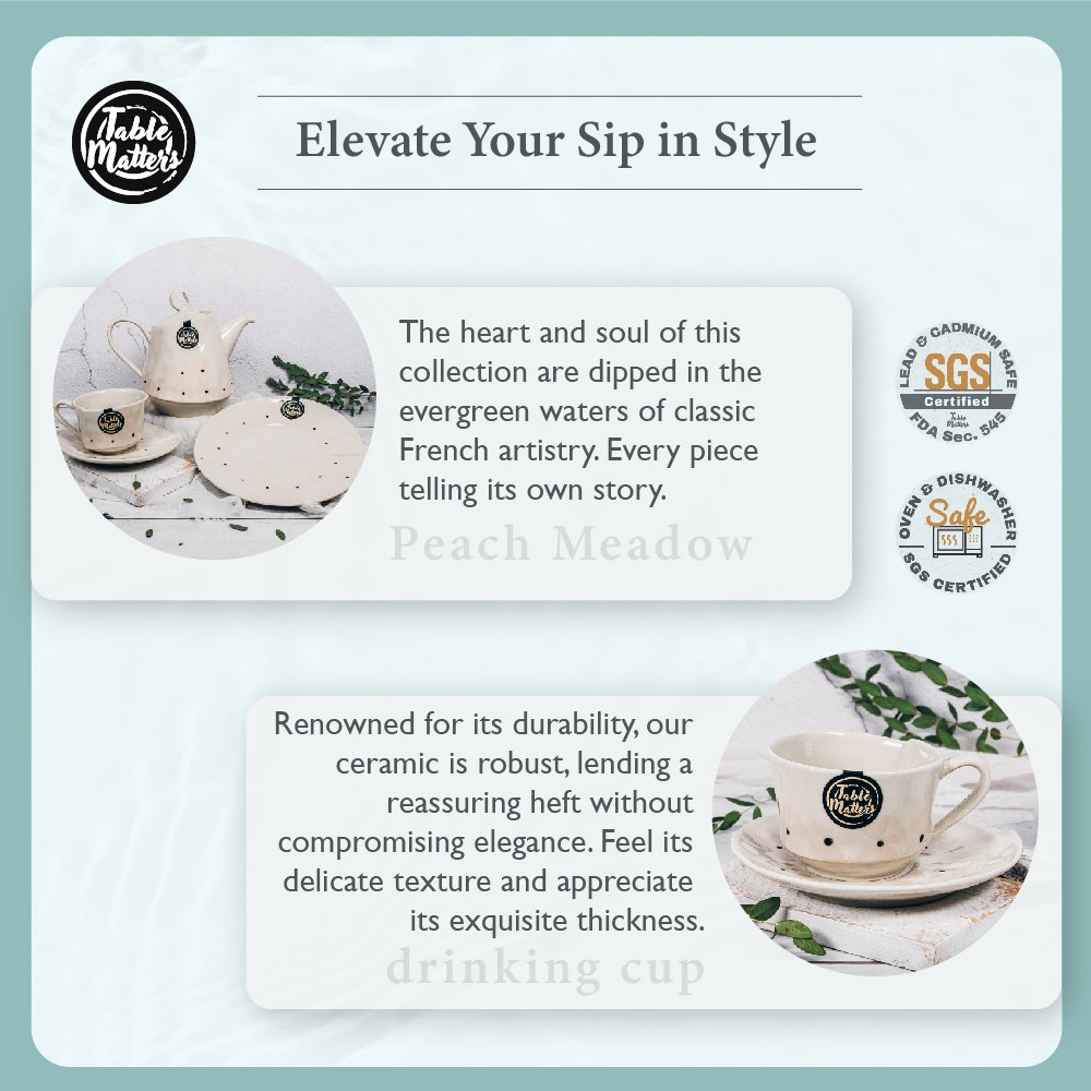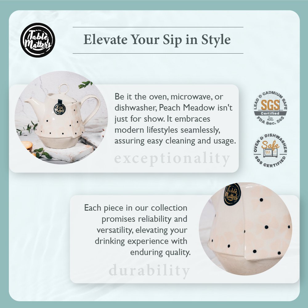 Singapore’s bustling lifestyle deserves a touch of serenity. The Peach Meadow isn’t just a visual treat for your health and convenience. Made without any lead or cadmium. it assures a safe sipping experience. Whether you wish to pop it into the microwave for a quick reheat or into the oven for a unique recipe. it handles everything. And. when you’re done. place it in the dishwasher. ensuring you more moments of tranquillity. Its sturdy ceramic design promises to be a companion for your tea rituals for a long time.