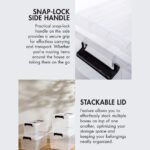 It’s the details that elevate the ‘HANDY’ Collection. The handle atop is meticulously designed. making transportation a cinch. Secure your treasures with the confidence-inducing snap-lock handles. And if space is at a premium? These boxes stack with ease. optimising every inch of your storage area.