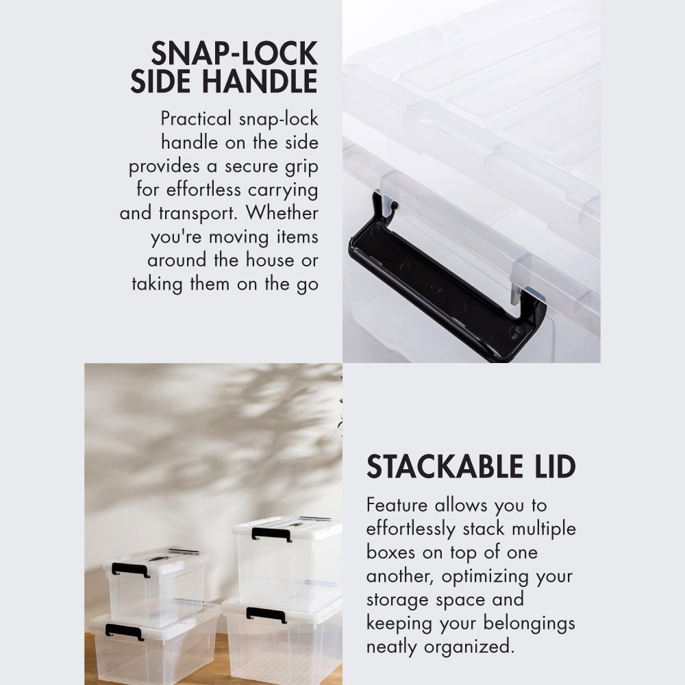 Life’s rapid pace demands efficient solutions. Step into the spotlight. the ‘HANDY’ Handheld 20L Storage Box. Moulded from sturdy polypropylene. it promises longevity for your belongings. The clarity of design allows effortless content spotting. Its ergonomic handle promises easy portability. while the snap-lock side handles seal your possessions securely. Stacking? Its reinforced bottom guarantees stability. For the dynamic souls of Singapore. the ‘HANDY’ Collection is the panacea for storage challenges. Welcome a more streamlined and ‘HANDY’ existence today.