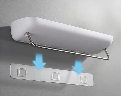 This shelf is designed to fit seamlessly in both your kitchen and bathroom. offering a strong bearing capacity to hold sponges. toiletries. cosmetics. and more with ease.