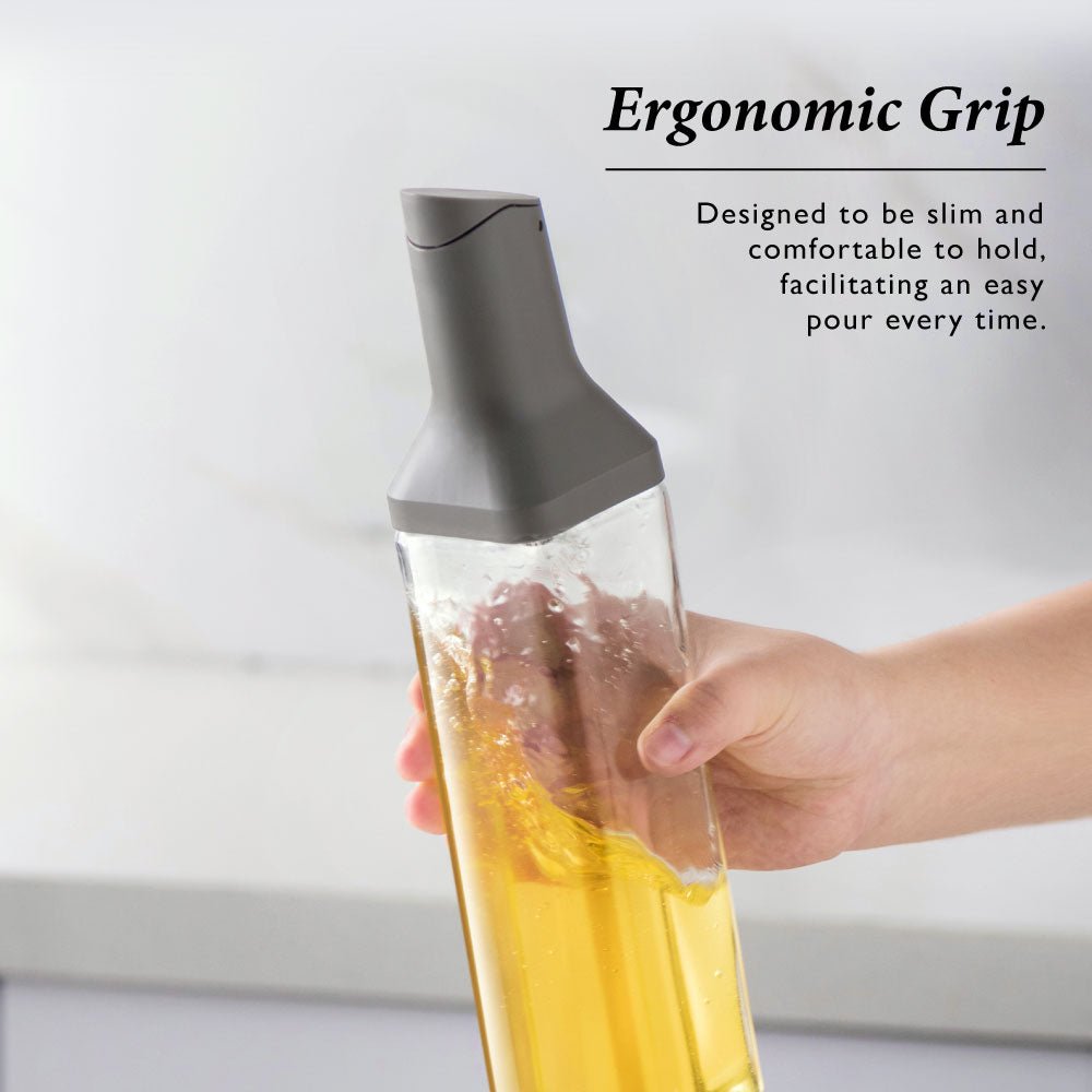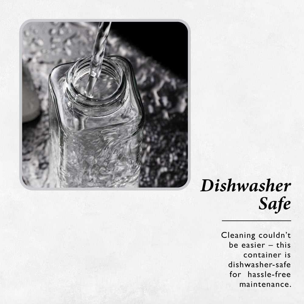 The anti-leakage design ensures that not a single drop is wasted. whilst the thick lead-free glass not only brings an extra layer of safety but also adds a touch of sophistication to your kitchen décor. Designed for style and simplicity. Not only is this eye-catching creation dishwasher-safe. but its slim. ergonomic design makes it a pleasure to hold. It’s not just a container; it’s a declaration of your culinary prowess and style.