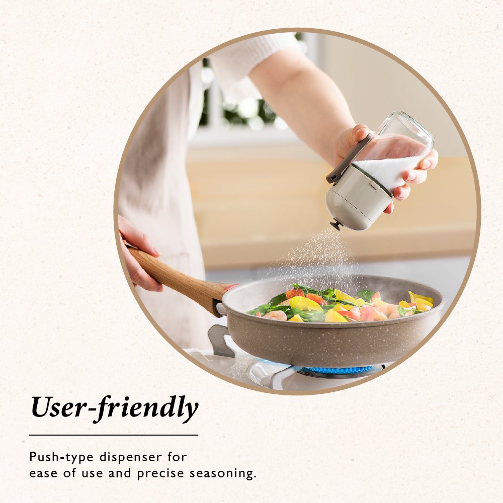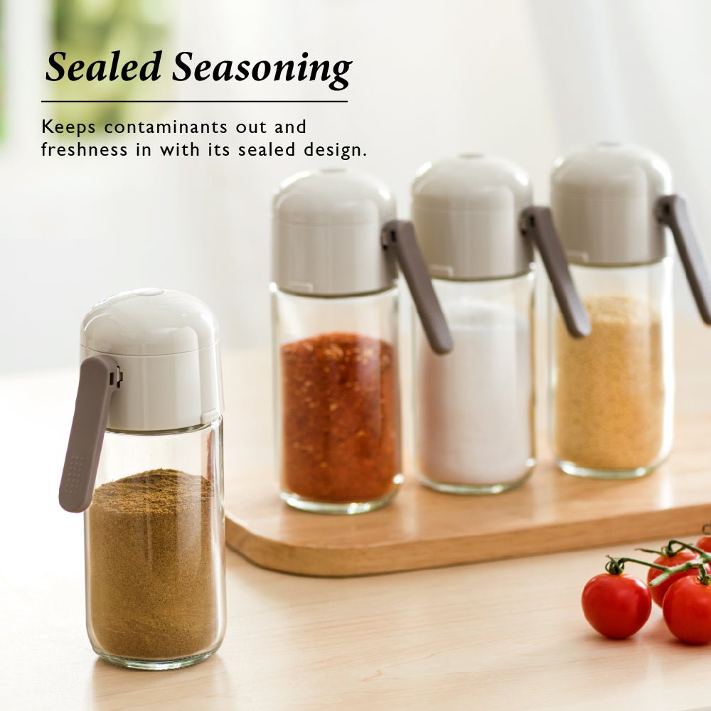 The HALO Glass Quantitative Salt Dispenser isn’t just a feast for the eyes; it’s a fusion of chic design and day-to-day practicality. Its sophisticated grey shade gracefully blends into various kitchen décors. making it a must-have in any household. And its moisture-proof feature? It guarantees your salt stays pristine and untainted. With the sealed seasoning bottle feature. every grain of Salt is kept pristine. The push-type dispenser promises a consistent sprinkle. distributing Salt evenly every time.
